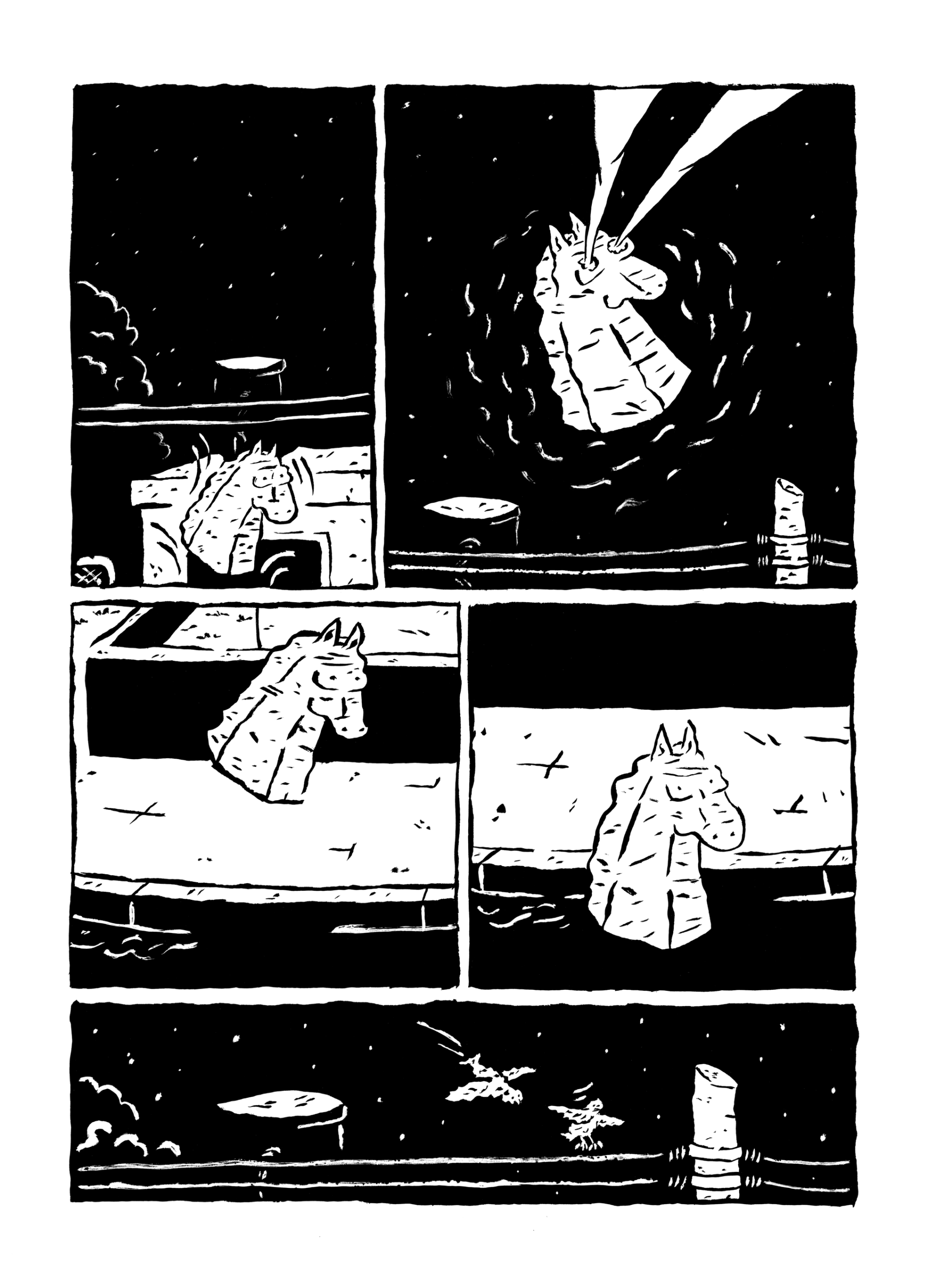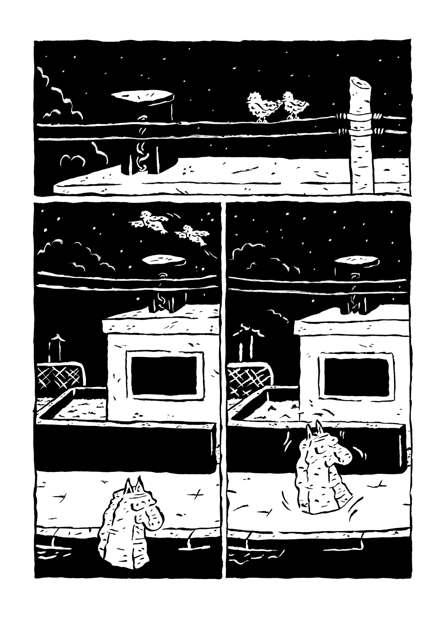 El libro abre con esta historieta, el resto divagan, a su manera, con variantes más o menos extraterrestres del mismo clima.